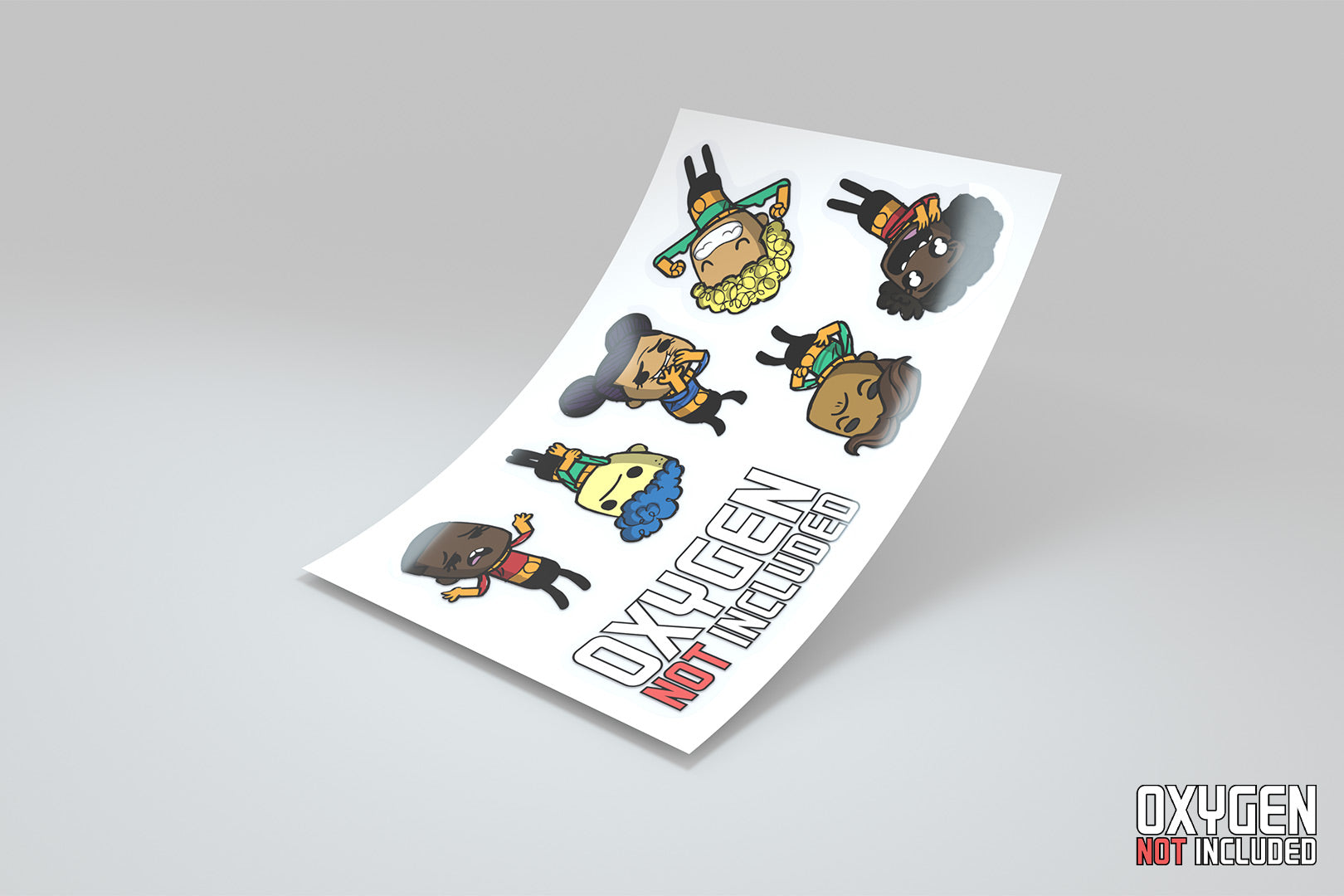 Featuring an assortment of Dupes, Critters and logos from the game Oxygen Not Included! These sticker sheets are screen printed and kiss-cut on clear vinyl, meaning you can affix them to any object without the typical white border.